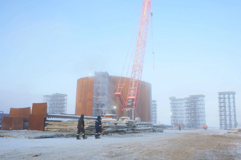 Для нужд стройки запущены бетонные заводы в арктическом исполнении, позволяющие производить и поставлять бетон в любое время года. Оборудованы цех по изготовлению арматурных каркасов, два тёплых гаража для техники и два тёплых склада инертных материалов. Завершается монтаж ещё двух складов для хранения строительных материалов. В летний период на объекте было задействовано порядка 300 человек и 95 единиц техники. В настоящее время, с учётом сезонной корректировки, на всех площадках работают 180 специалистов и 20 единиц техники.