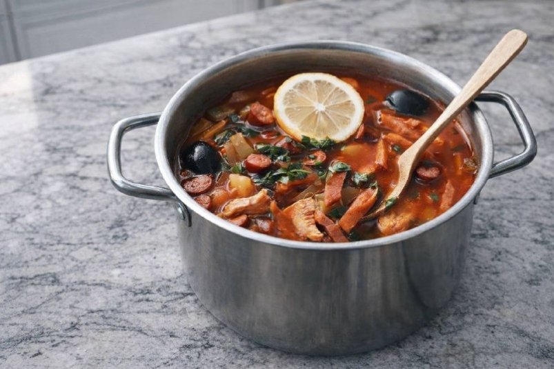 Сборная мясная солянка отлично выручает как блюдо "второго дня" после Нового года. Мясные закуски, колбасная нарезка, огурчики, капуста, маслины, всё это обычно остаётся на столе. Из этих продуктов за 40 минут можно сварить сытную солянку без дополнительных покупок, отмечает автор Дзен-канала "В гостях у Счастливой Лягушки" (18+).