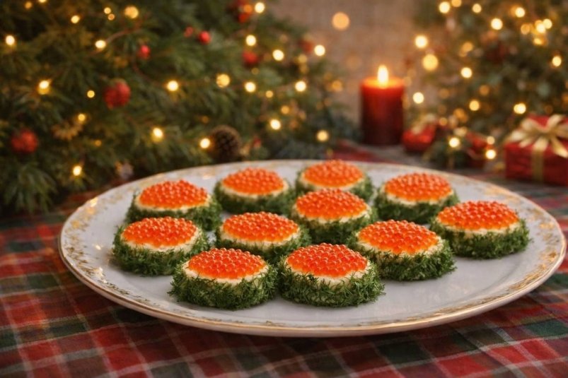 Суть идеи — в оформлении хлеба. Основа превращается в небольшие "веночки", по краю украшенные зеленью или посыпкой, а в центр выкладывается икра. Такие мини-бутерброды смотрятся аккуратно, хорошо держат форму и легко едятся за столом.