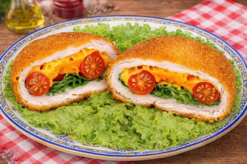 Котлета по‑милански с начинкой из сыра, рукколы и помидоров черри. Такое сытное и удобное блюдо для рождественского стола готовится из простых продуктов, а за счет панировки и сливочно-шпинатного соуса получается праздничным и выразительным, делится автор Дзен-канала "Кухня наизнанку" (18+).