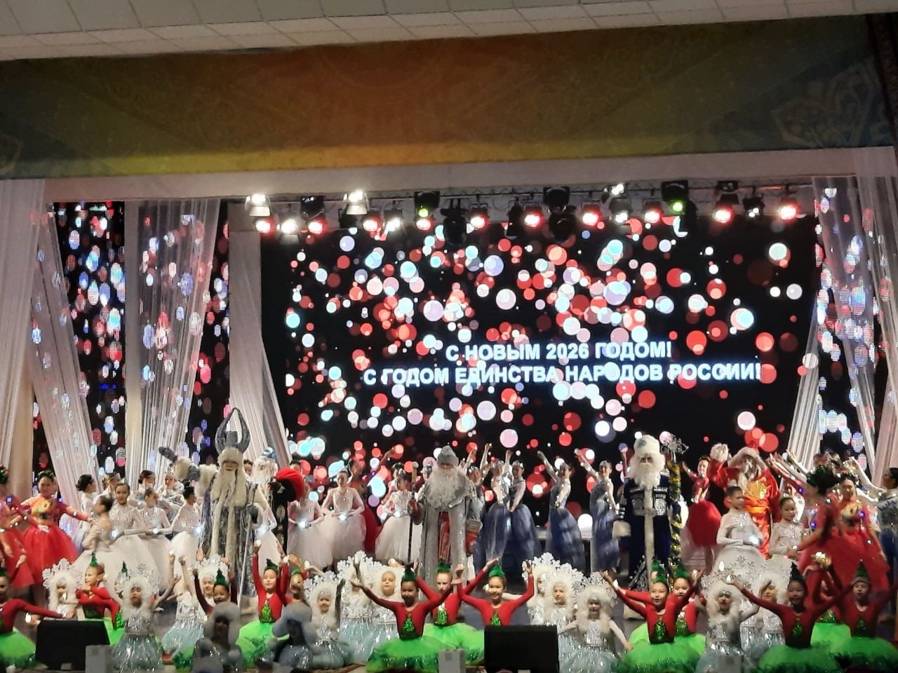 Особую значимость событию добавило появление на сцене сказочных персонажей: якутского Чысхаана, русского Деда Мороза, татарского Кыш Бабая и бурятского Сагаан Убгена. Каждый из них обратился к гостям на своем родном языке, подчеркивая многообразие культур, составляющих Россию.