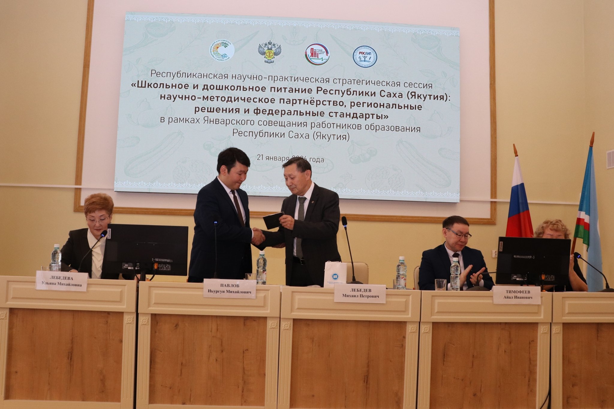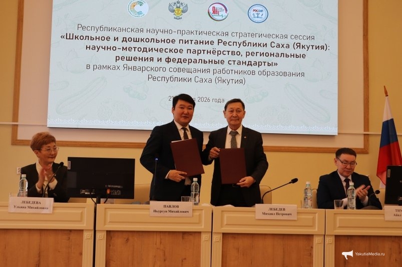 Михаил Лебедев и Ньургун Павлов подписали соглашение о партнерстве между Якутским научным центром и министерством образования и науки республики. Оно предусматривает научно-методическое сопровождение системы питания в школах и детских садах, а также совместную реализацию профильных проектов и программ.