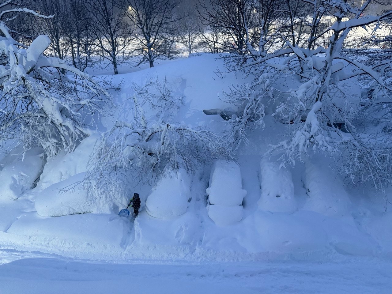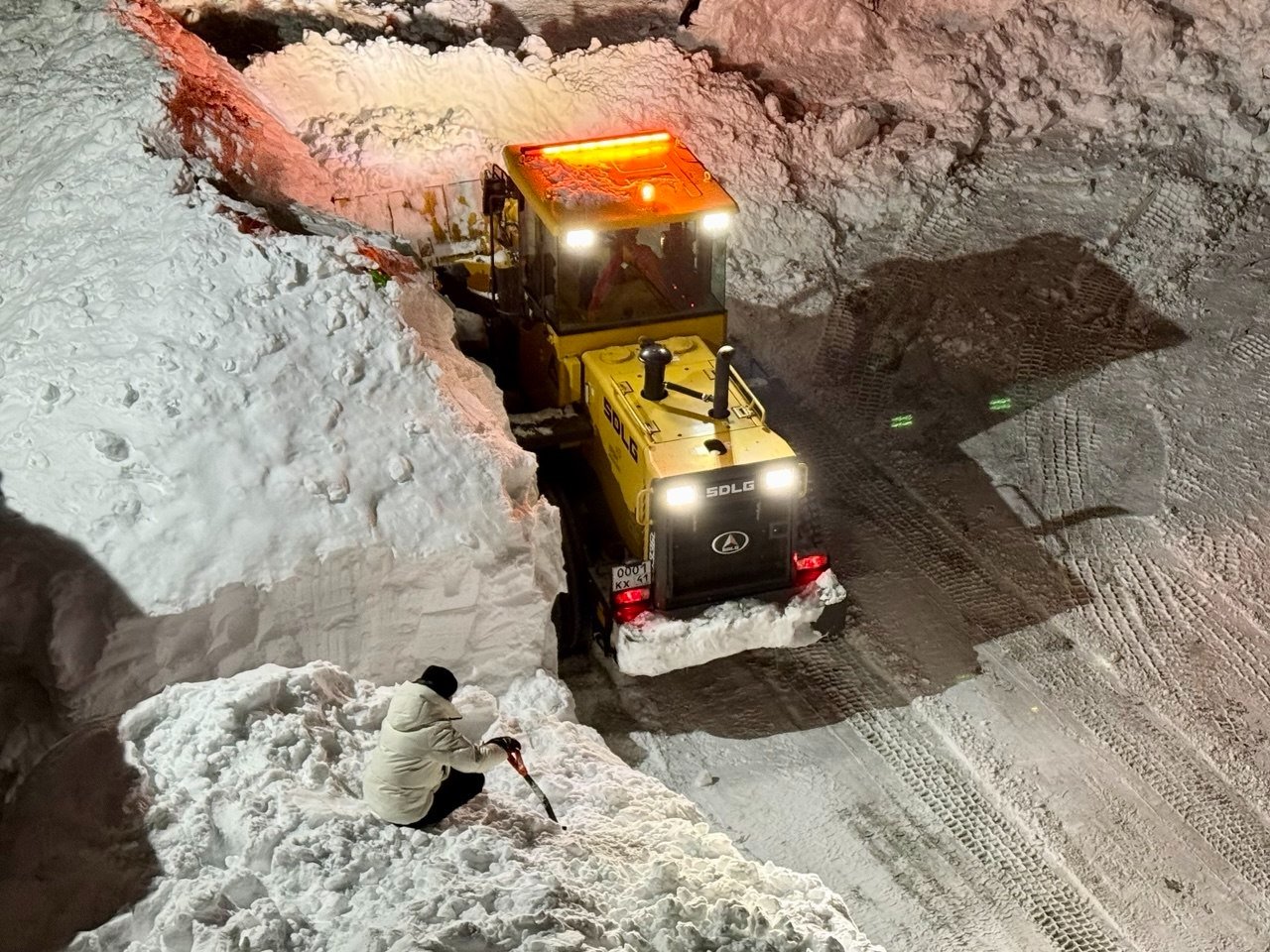 Наконец, в пять утра расчистка прерывается, чтобы на следующий день вновь пробиваться в плотном снегу.