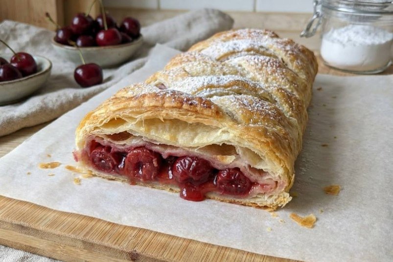 Замороженная вишня и готовое слоеное тесто помогают быстро приготовить домашнюю выпечку без сложных усилий. Сладкий вишневый рулет выручит, когда нужно что‑то к чаю из простых продуктов.