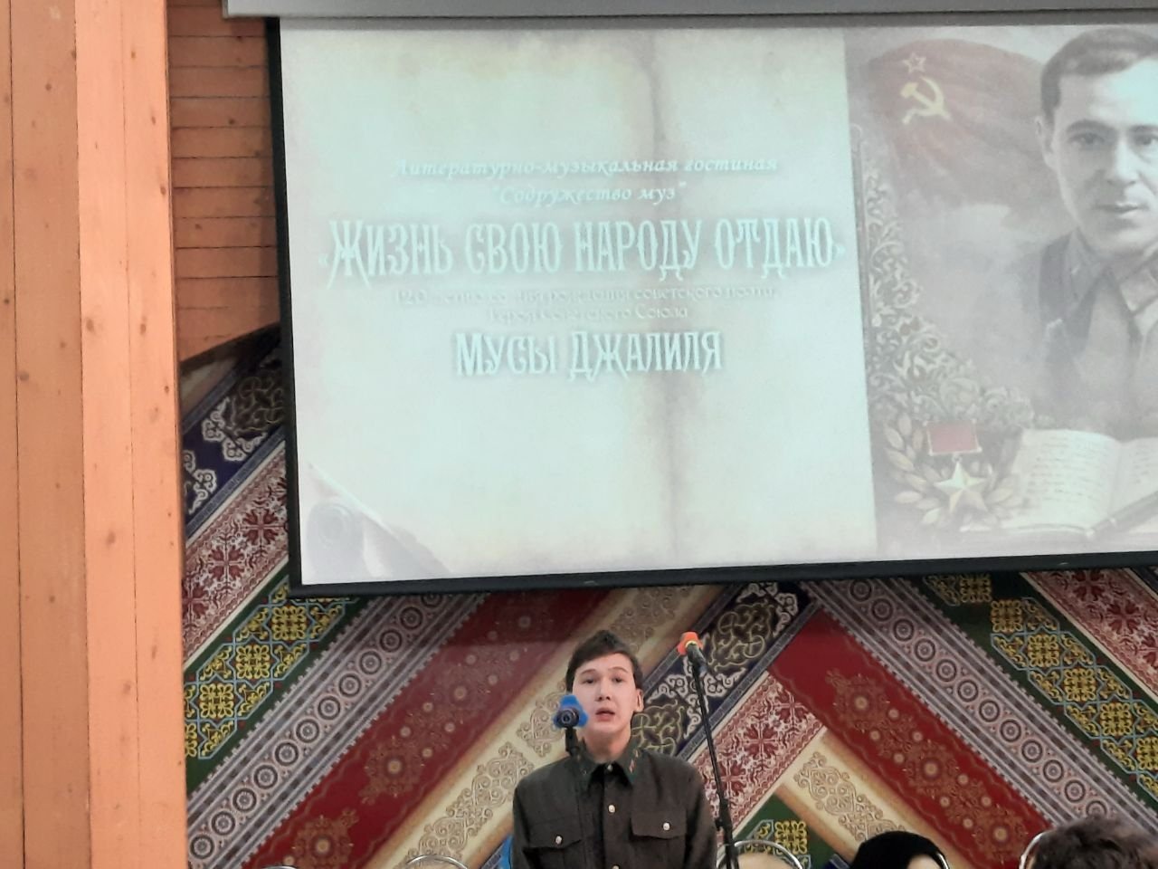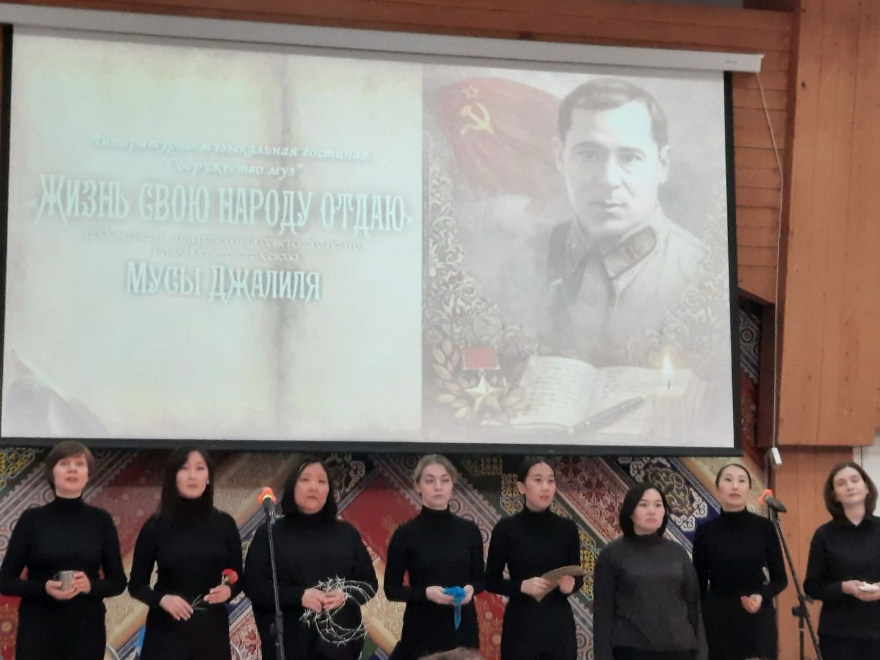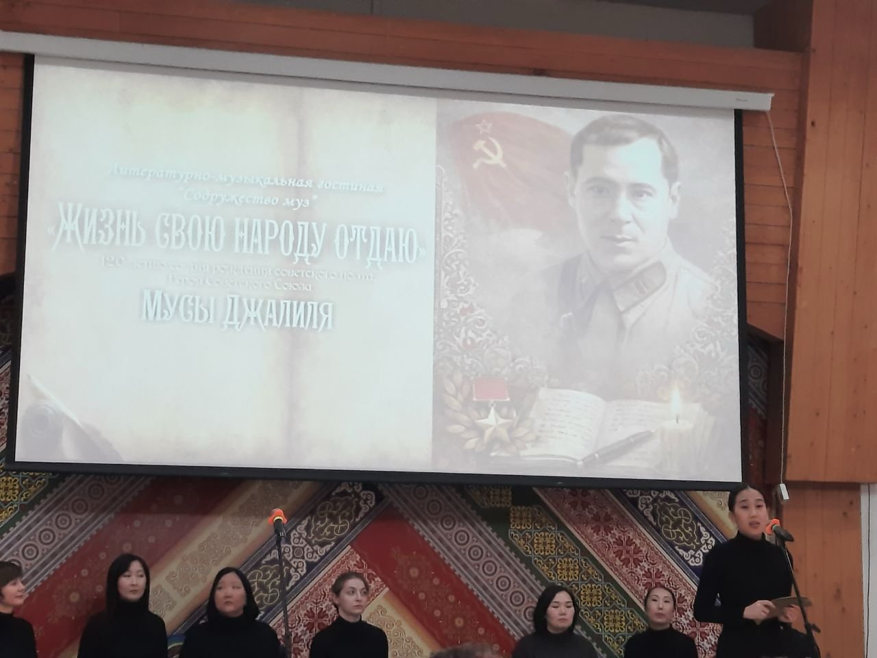 В этой церемонии участвовали генеральный директор Дома дружбы народов Антонида Корякина, заместитель министра по внешним связям и делам народов Якутии Татьяна Пяткина, а также активисты Татарского культурного центра "Туган як". Цветы стали выражением глубокого уважения и признательности мужеству поэта, чьи стихи, написанные в фашистском плену, получили всемирную известность. Затем в здании Дома дружбы прошёл диктант на татарском языке. Главным событием вечера стала литературно-музыкальная программа "Содружество муз" (12+), приуроченная к юбилею Джалиля. Собравшимся рассказали о судьбе поэта — его детстве в селе Мустафино, первых поэтических опытах, комсомольской молодости, учёбе в Московском университете, редакционной работе, а также о военном периоде и гибели в застенках Моабитской тюрьмы.
