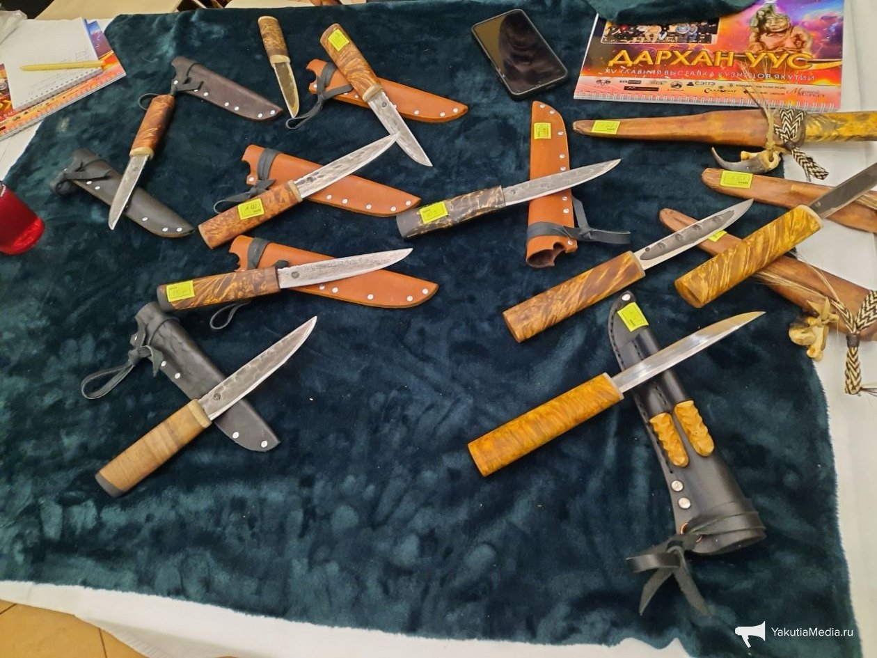 На выставке кузнечного мастерства "Дархан Уус" (6+) в Якутске свои работы продемонстрировали более 70 мастеров. Экспозиция также включила в себя самый крупный на планете нож, изготовленный в якутских традициях. Ценовой диапазон представленных ножей весьма широк: простые рабочие модели доступны за пять–десять тысяч рублей, тогда как уникальные экземпляры с гравировкой и рукоятью из мамонтовой кости оцениваются в 150–200 тысяч. Более подробно в фоторепортаже ИА YakutiaMedia.