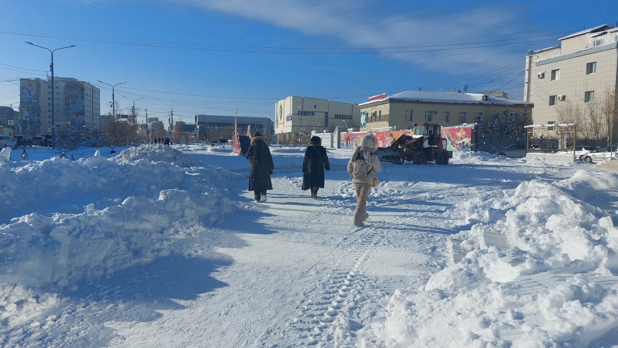 После морозов ниже -40°C, которые были на прошлой неделе, столбик подскочил до -5°C — аномалия для февраля по климатическим нормам Якутии. Жители радуются солнцу, но коммунальщики на страже: с крыш сбрасывают наледь, во дворах чистят завалы.