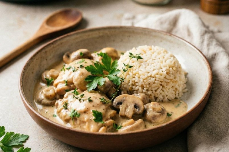 Так курочку вы точно не готовили — нежное фрикасе с рисом и грибами растопит сердце любого гурмана
