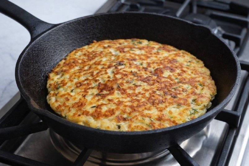 6. Обжаривают на небольшом огне около 3 минут, затем аккуратно переворачивают, накрывают крышкой и готовят ещё 3 минуты до золотистой корочки.
