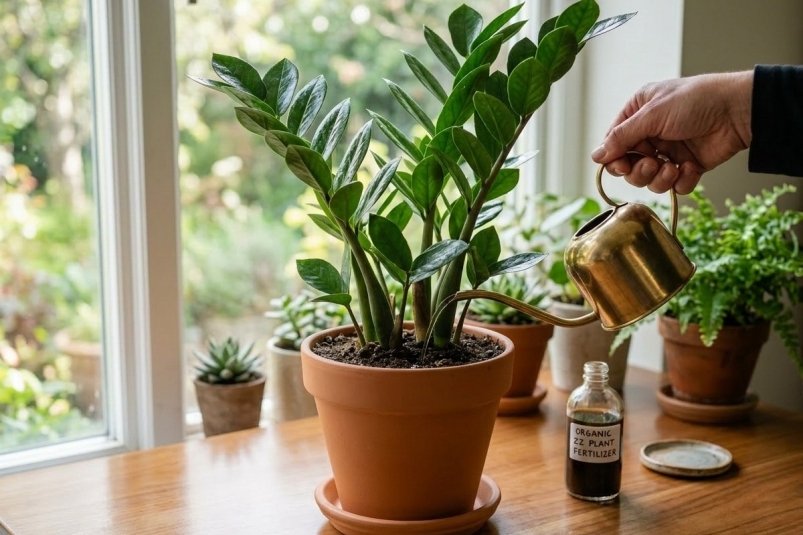 После зимнего периода замиокулькас нередко "замирает" и не спешит обновлять листву. Чтобы "разбудить" растение и стимулировать рост, полезно подкормить его натуральным составом, но сначала нужно исключить грубые ошибки в уходе.