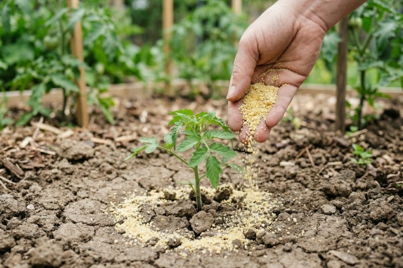 Чтобы томаты быстро прижились и стартовали без стресса, важно правильно подготовить лунку. У растения с первых дней должен быть доступ к основным элементам — фосфору для корней, калию для завязи и кальцию против гнили. Оптимальный состав включает 3 компонента: древесную золу, рыбную муку и борофоску. Об этом рассказывает опытный дачник в Дзен-канале "Идеальный огород" (18+).