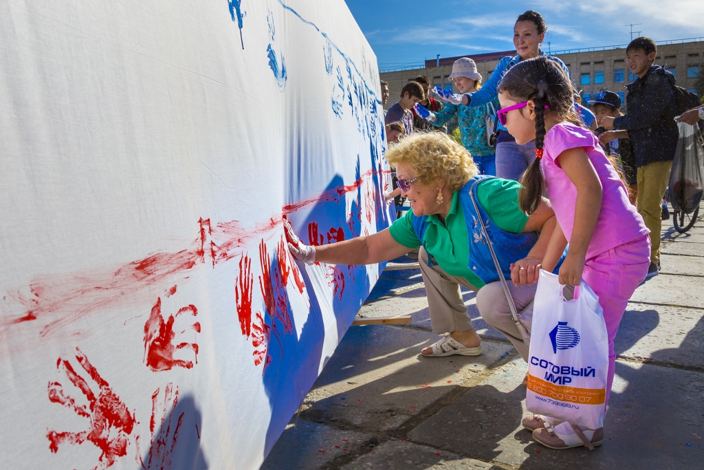 В конце акции из отпечатков сотен ладоней был создан флаг Российской Федерации. Всего в акции приняло участие более 700 человек.
