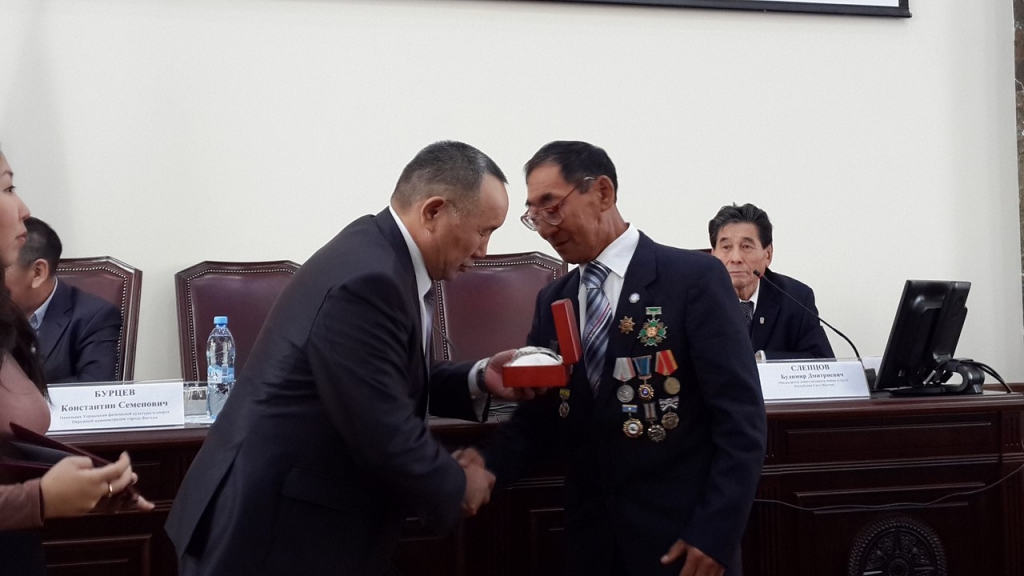 Министр спорта РС (Я) Михаил Гуляев вручил бегуну знак "Отличника физической культуры и спорта" и правительственные золотые часы.