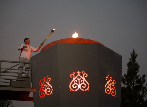Чести зажечь огонь спортивных Игр удостоился бронзовый призёр чемпионата мира, чемпионатов Европы, чемпион России по вольной борьбе, Почётный гражданин Горного улуса Александр Контоев.