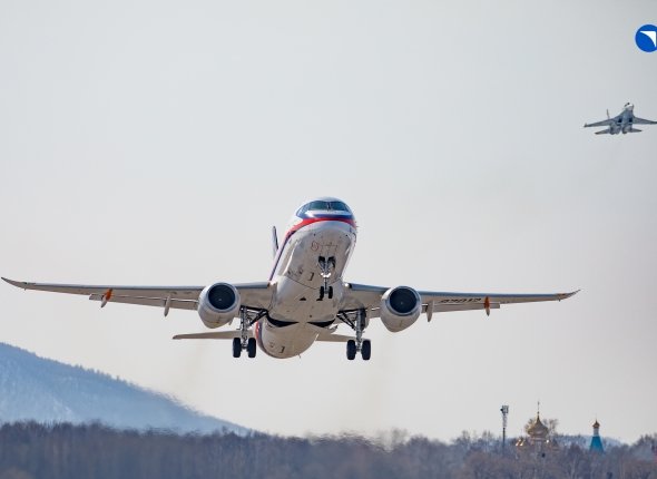 Первый полет совершил в Комсомольске-на-Амуре «Суперджет» с российским двигателем. Фото: Предоставлено пресс-службой Госкорпорации Ростех