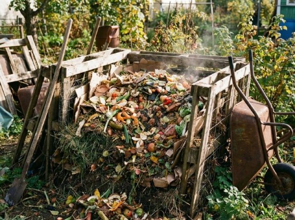 Осенью и зимой в компостную кучу попадает больше всего листвы и садовых остатков. Важно не превращать её в свалку. Нельзя добавлять: