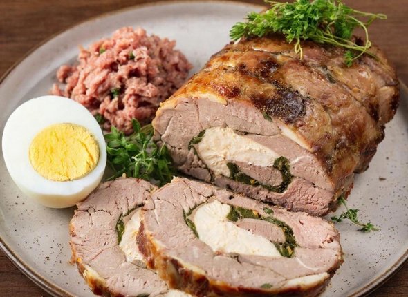 YakutiaMedia, 5 декабря. Мясной рулет с яйцом в духовке готовится из свиного фарша, лука, чеснока и двух варёных яиц. Его запекают в фольге 20–25 минут, а за 10 минут до конца раскрывают фольгу, чтобы появилась корочка.
