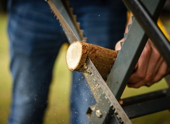 Начинают не с заточки, а с разводки зубьев. Она нужна, чтобы пропил был чуть шире полотна и пила не заклинивала. Зубья поочерёдно отгибают в разные стороны, захватывая только верхнюю половину, примерно от середины высоты. Отклонение обычно делают около 2 мм и не больше двойной толщины полотна. Для сырой древесины разводку немного увеличивают, для сухой её уменьшают. Важно, чтобы все зубья были отогнуты одинаково, это видно на глаз. Потом переходят к заточке.