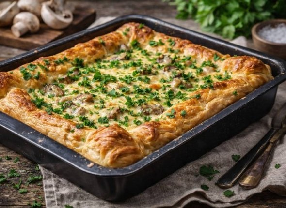YakutiaMedia, 7 января. Пирог-жюльен — простой способ подать курицу с грибами и сливками в более сытном виде. За основу берут слоёное тесто, а сверху выкладывают сочную начинку. Рецепт подойдёт даже тем, кто редко готовит.