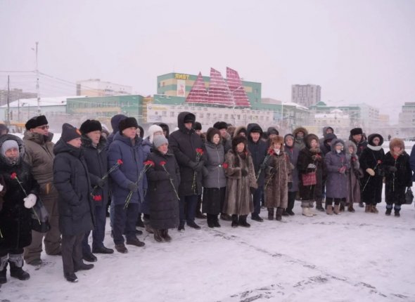 YakutiaMedia, 27 января. Сегодня в Якутске к мемориальной плите "Город-герой Ленинград" возложили цветы в честь Дня полного освобождения Ленинграда от фашистской блокады. В церемонии на площади Победы приняли участие представители власти, ветераны, молодёжь и горожане.