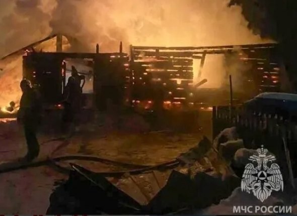Пожар уничтожил коровник и 56 голов скота в Вилюйском улусе Якутии
