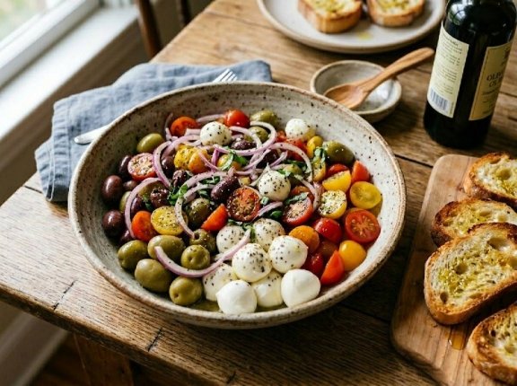 Иногда самые обычные ингредиенты создают настоящий кулинарный шедевр. Эта быстрая закуска объединяет спелые томаты черри, мягкую моцареллу и оливки в аппетитной пряной заливке. Всего 10 минут — и перед вами ароматное блюдо, которое подают и в лучших ресторанах.