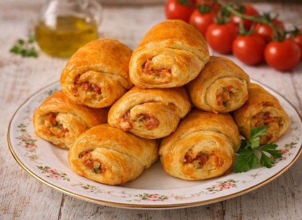 Из слоёного теста можно приготовить множество сытных и простых блюд. Оно прекрасно заменяет основу для пиццы, хлеб или тесто для пирожков. Один из удачных вариантов — аппетитные рулетики, которые готовятся быстро, но выглядят эффектно и подойдут как для повседневного ужина, так и для праздничного стола.