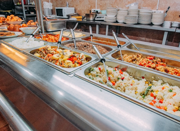 Выбирайте блюда, приготовленные непосредственно перед подачей. Избегайте салатов, мяса и рыбы, долго стоящих на раздаче. Горячие блюда должны быть горячими, холодные — холодными. Срок реализации горячих блюд у шведского стола — не более трёх часов с момента приготовления, холодных — не больше часа после заправки.