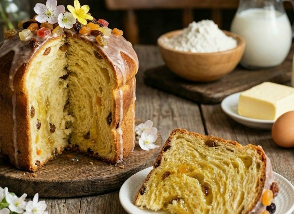 Пасхальный кулич "Сливочный шёлк " — идеальный вариант для тех, кто ищет особенно нежную и ароматную выпечку. Его структура получается необычайно воздушной и слегка слоистой благодаря высокому содержанию сливочного масла. Такой кулич долго остаётся мягким и не крошится.