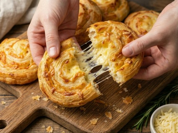 Тем, кто обожает сыр, понравится рецепт слоёных рулетиков. Это быстрый и выразительно вкусный вариант выпечки к чаю или кофе. Всего несколько ингредиентов, минимум усилий, и угощение готово.