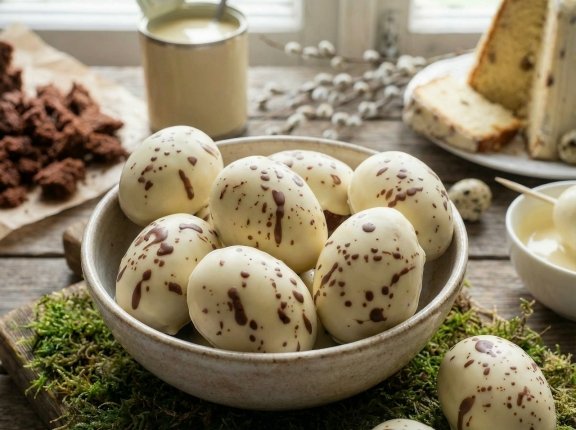 Украшать пасхальный стол можно и без крашеных яиц. Всё чаще хозяйки выбирают оригинальный десерт — пирожное "картошка", выполненное в форме мини-яиц. Оно выглядит эффектно и быстро готовится.
