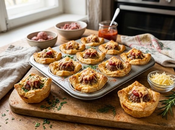Слоёное тесто прекрасно подходит для приготовления быстрых и сытных закусок. Тарталетки с фрикадельками получаются особенно удачными: они сочные, ароматные и имеют аппетитную хрустящую корочку. Готовятся такие тарталетки просто и могут заменить полноценный обед или ужин.