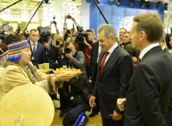 В день открытия фестиваля Русского географического общества Сергея Шойгу и Сергея Нарышкина угостили северными деликатесами, показали настоящий эвенкийский чум. Большой интерес вызвал рассказ руководителя общественной женской организации КМНС Якутии "Северянка" Татьяны Сивцевой об особенностях жизни на Севере, а также мастер-классы якутян по изготовлению национальных поделок. Выставка прошла в рамках проведения фестиваля РГО в Москве, сообщает ИА YakutiaMedia со ссылкой на пресс-службу Постпредства Якутии в Москве.