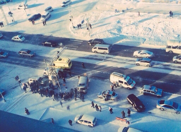 ДТП на перекрестке Лермонтова-Кирова в Якутске. Фото: Фото: мессенджер WhatsApp