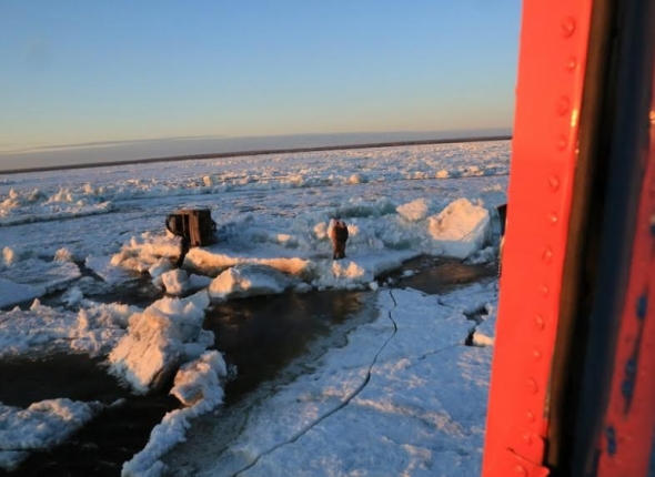 "Лед начал сдавливать наш катер и в считанные секунды его вытолкнуло из воды как пробку из шампанского на ледяное поле и он сразу начал заваливаться на бок, мы с напарником успели выпрыгнуть в последний момент на льдину", — рассказал один из потерпевших.