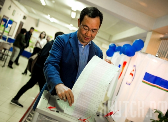 Глава города Якутска Айсен Николаев вместе с супругой прибыли в 12.00 часов на избирательный участок, расположенный в здании СОШ № 33, и отдали свои голоса за самых достойных кандидатов.