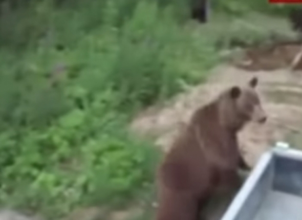 Мужчины замерли на крыше автомобиля, чтобы лишний раз не вызывать агрессию медведица. Через некоторое время хищница с двумя медвежатами удалилась в лес.
