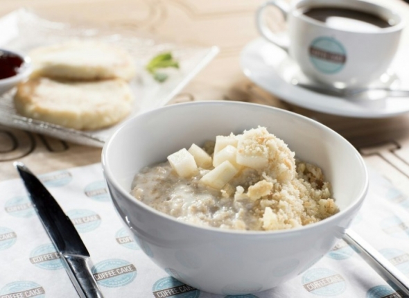 В современном кафе "Соffe Cake" посетителям предложат различные каши от 120 рублей – гурьевская, овсяная, рисовая. Оладьи, блины с мясом и творогом за 275 рублей. Омлеты, яичницы, простая яичница стоит 140 рублей, с добавлением наполнителя в виде сосисок или бекона – 205 рублей, стоимость наполнителя составляет 65 рублей.